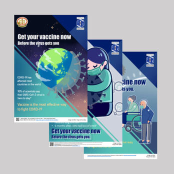 ‣ Series of 3 posters to promote COVID-19 vaccination to the Hong Kong public, working in collaboration with The Hong Kong College of Pathologists.‣ Themes of the design include "COVID-19: a Global Pandemic", "Elderly and COVID-19" and "Long-COVID".